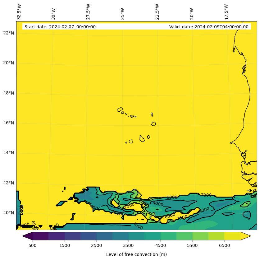 • Level of free convection (m)