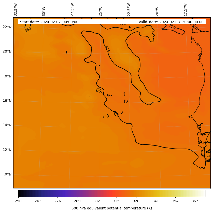 - Equivalent Potential Temperature (K)