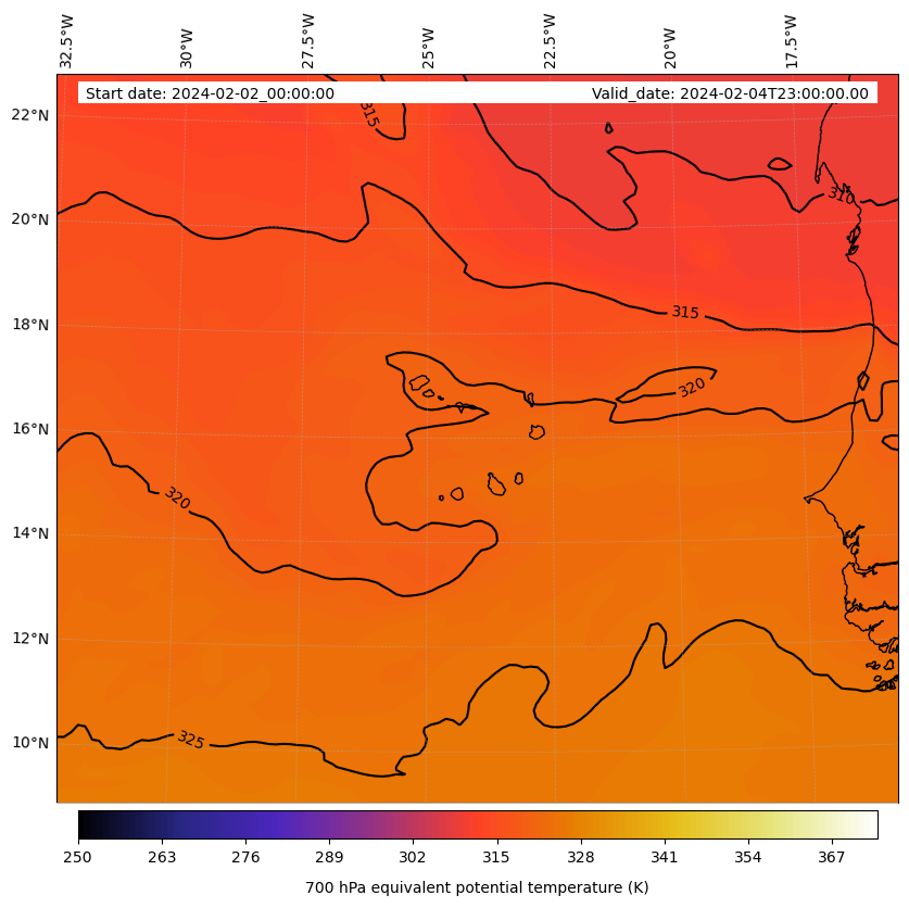 - Equivalent Potential Temperature (K)