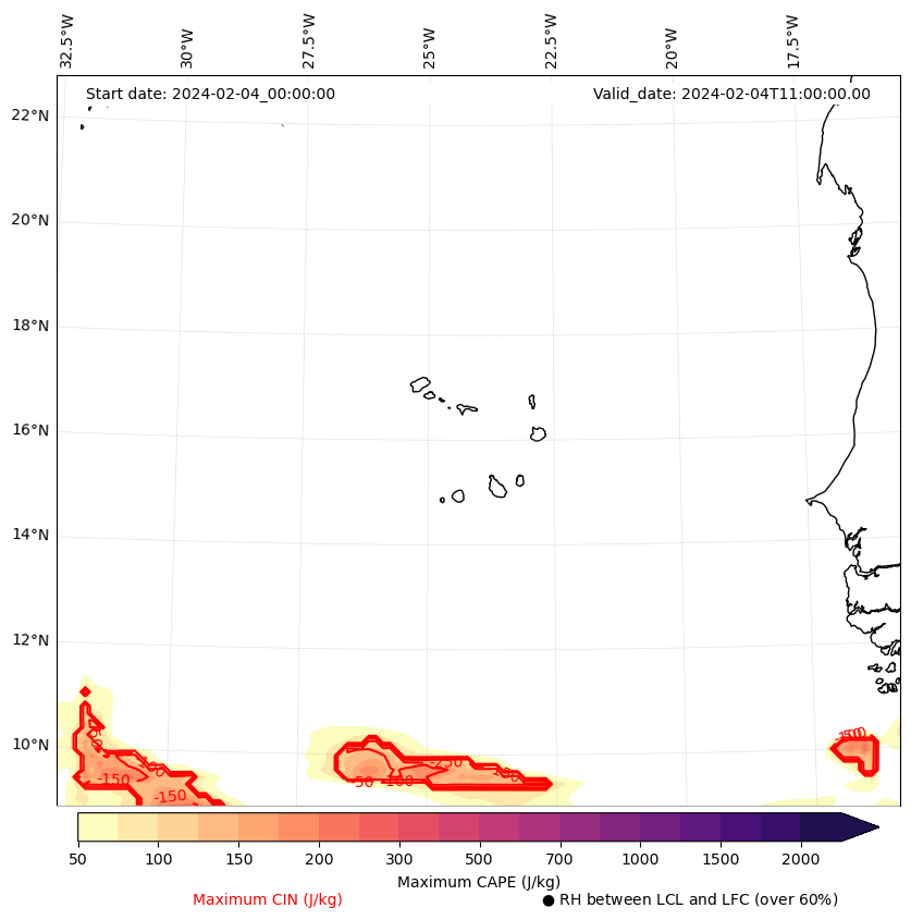 • Maximum CAPE (J/Kg)