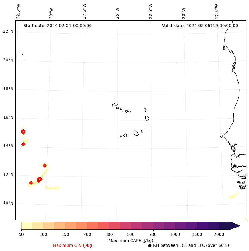 - Maximum CAPE (J/Kg)