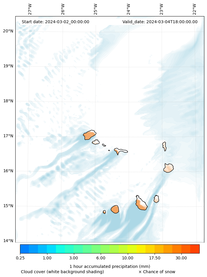 - Snow mixing ratio (g kg¯¹)