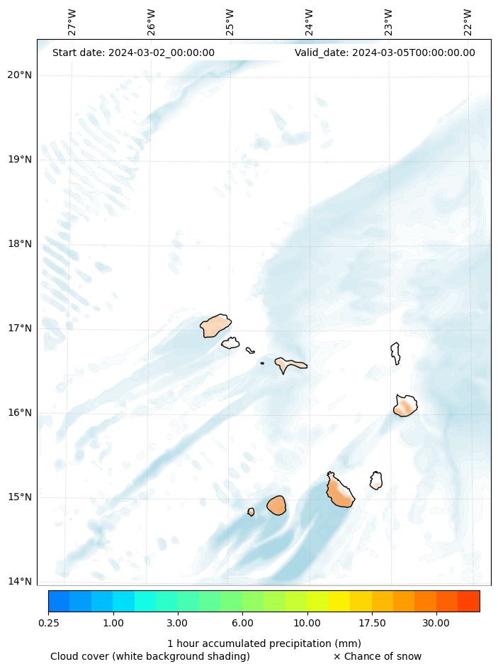 - Snow mixing ratio (g kg¯¹)