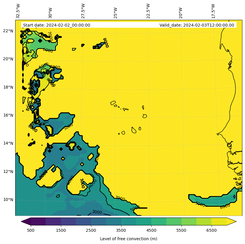 • Level of free convection (m)