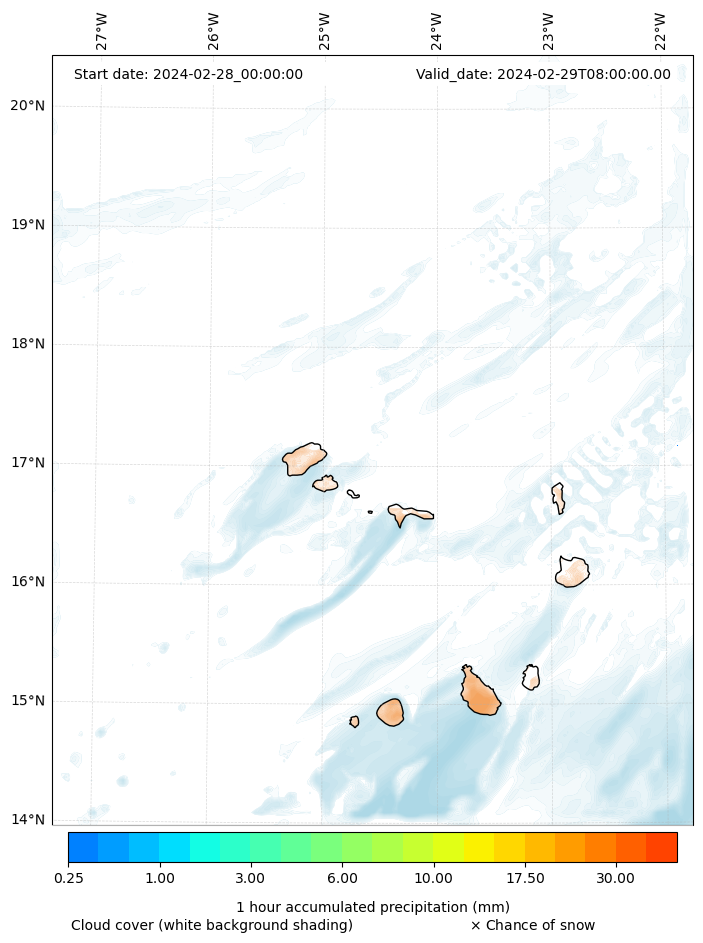 - Snow mixing ratio (g kg¯¹)