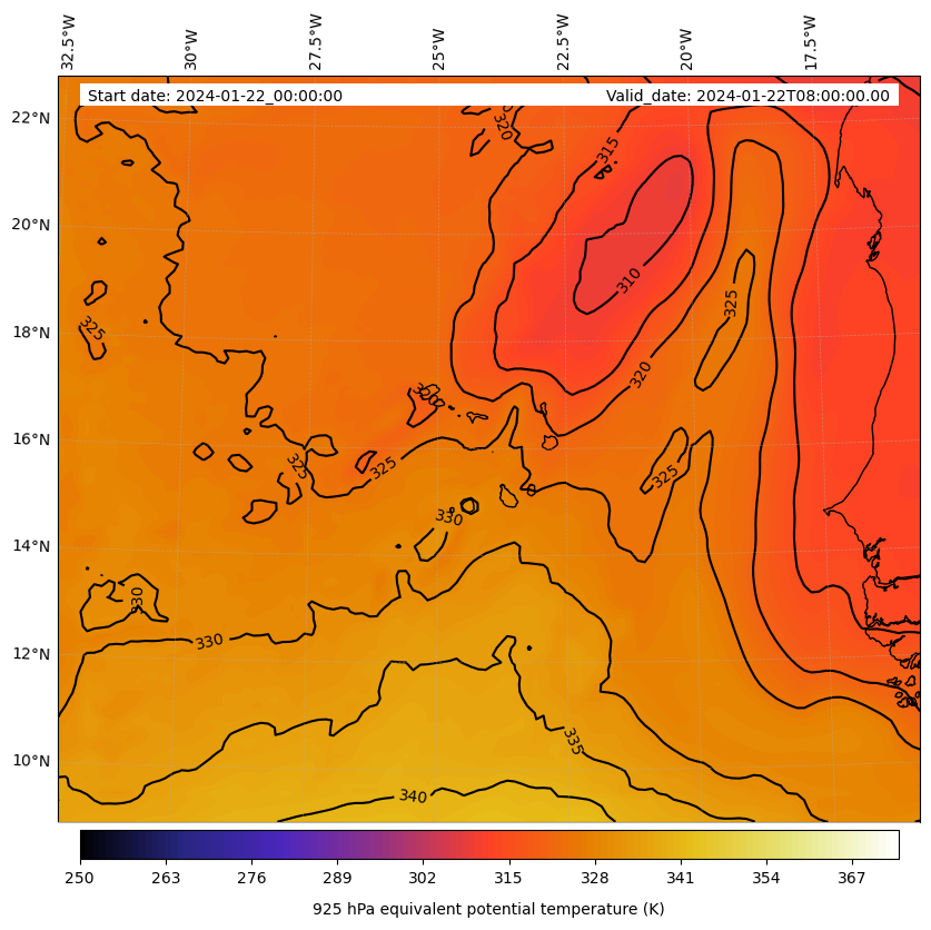 - Equivalent Potential Temperature (K)