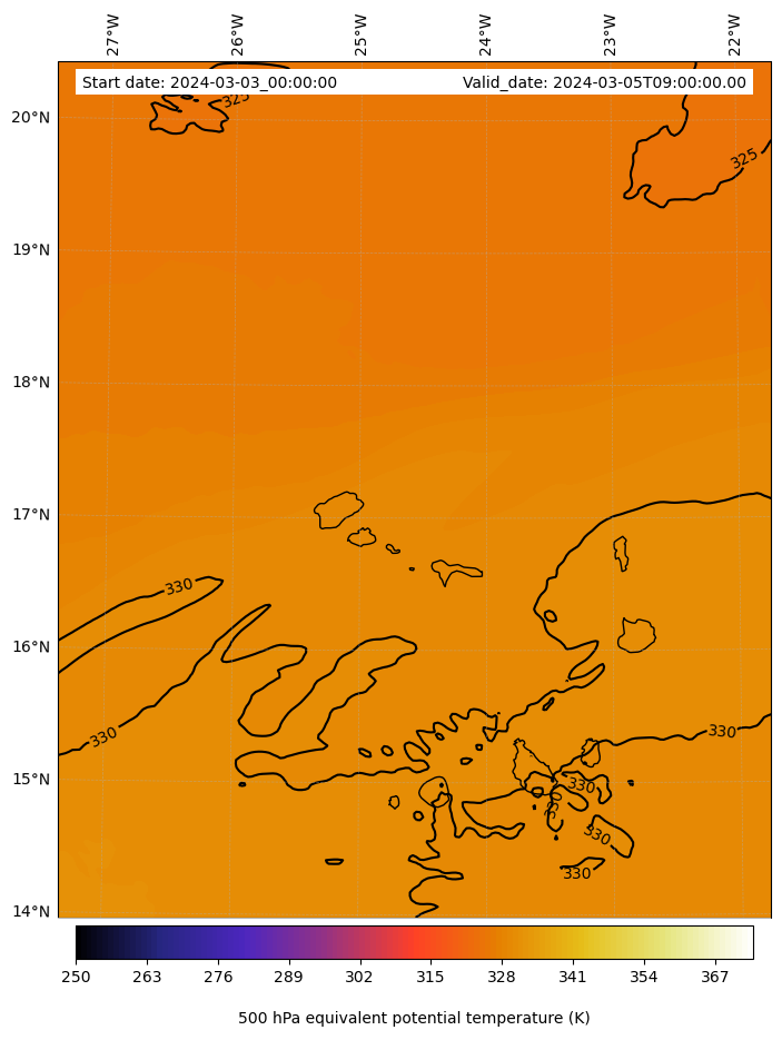 - Equivalent Potential Temperature (K)
