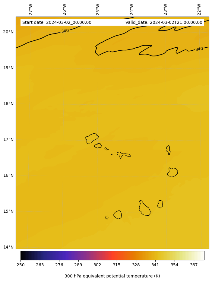 - Equivalent Potential Temperature (K)
