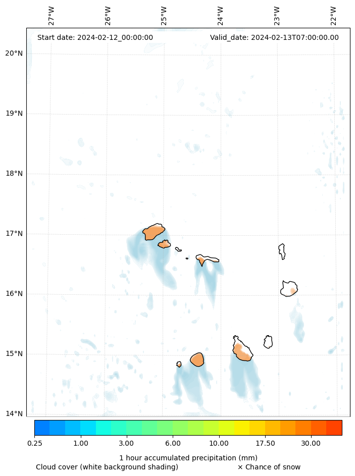 - Snow mixing ratio (g kg¯¹)