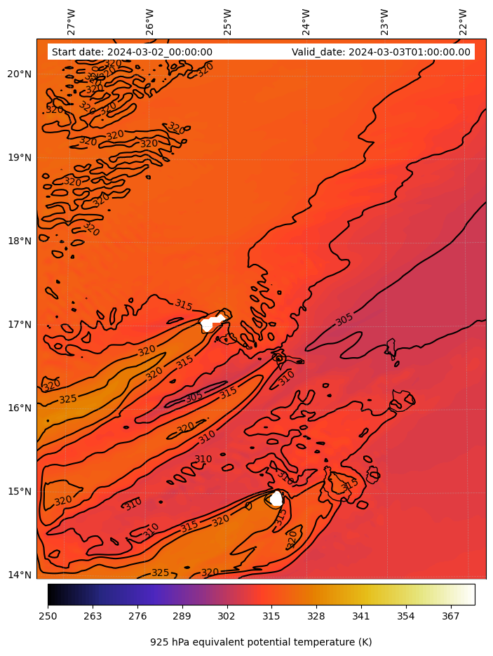 - Equivalent Potential Temperature (K)