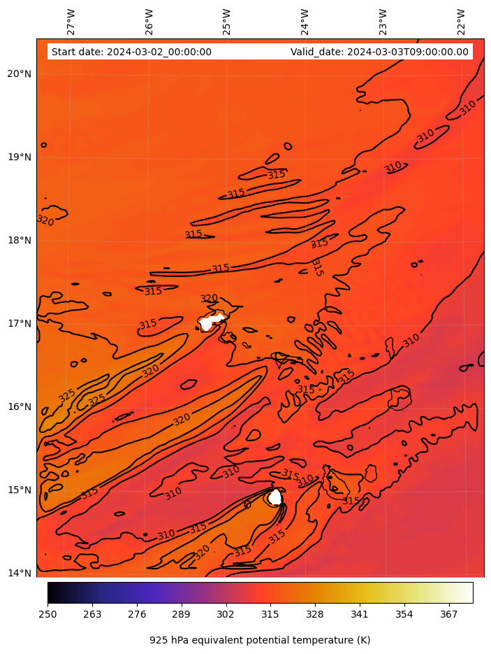 - Equivalent Potential Temperature (K)