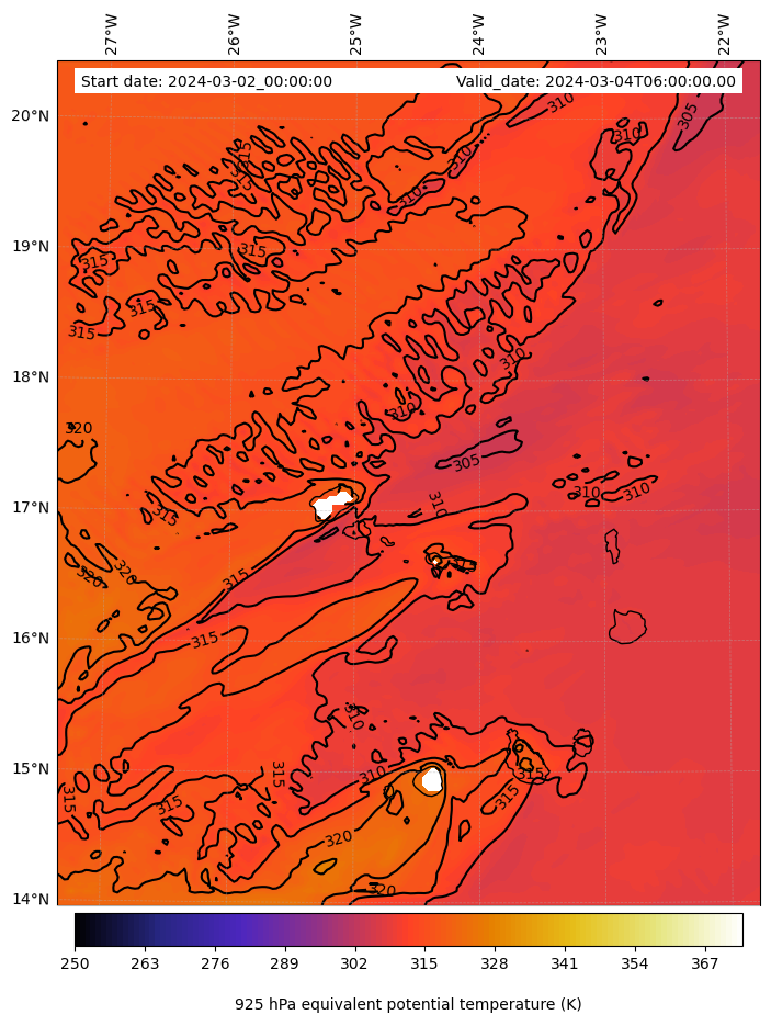 - Equivalent Potential Temperature (K)