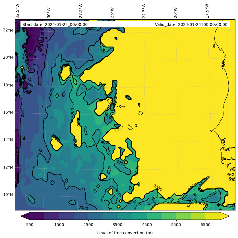 • Level of free convection (m)