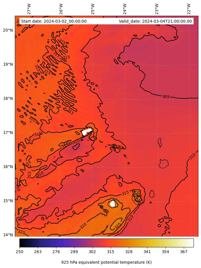 - Equivalent Potential Temperature (K)