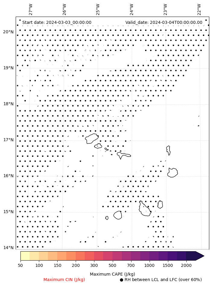 • Maximum CAPE (J/Kg)