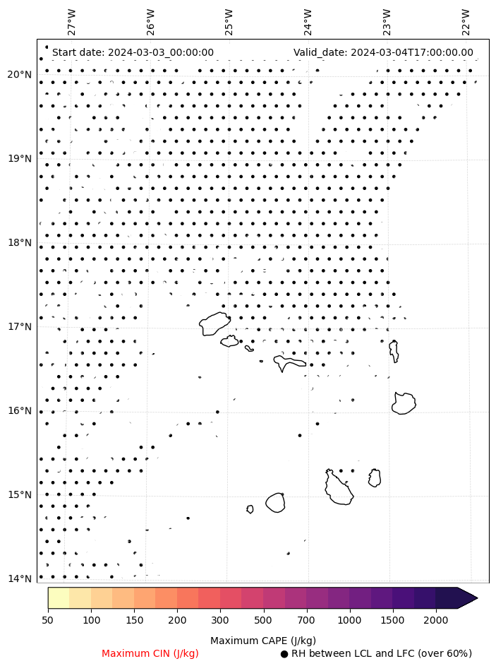 • Maximum CAPE (J/Kg)