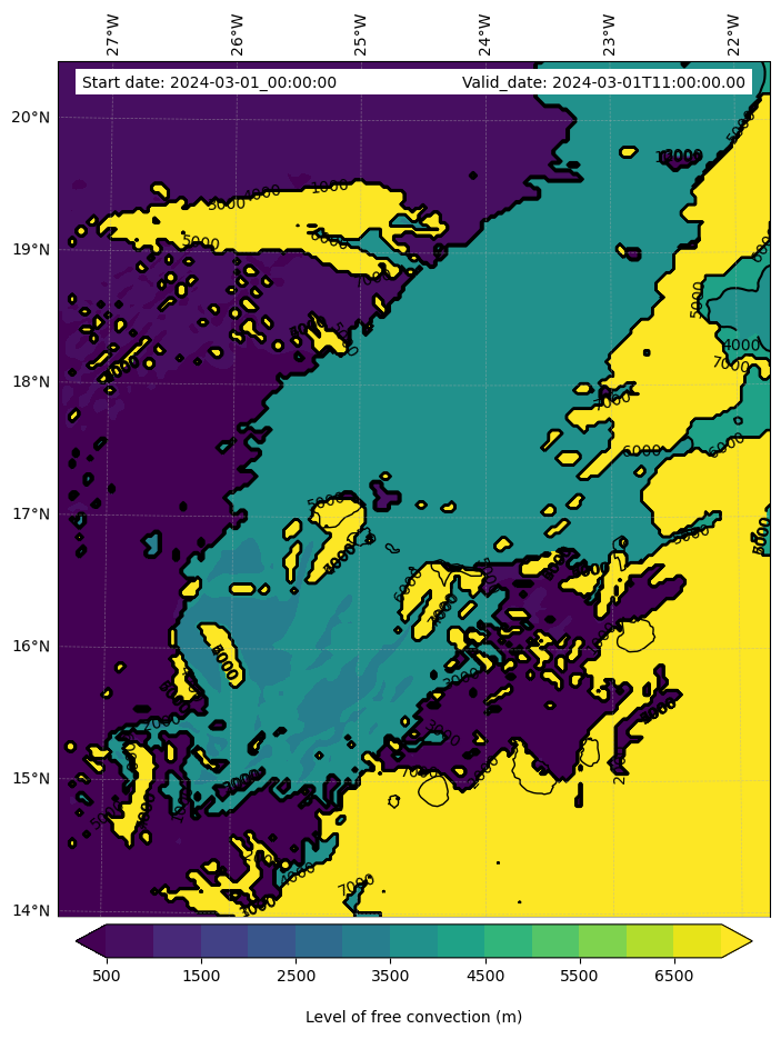 • Level of free convection (m)