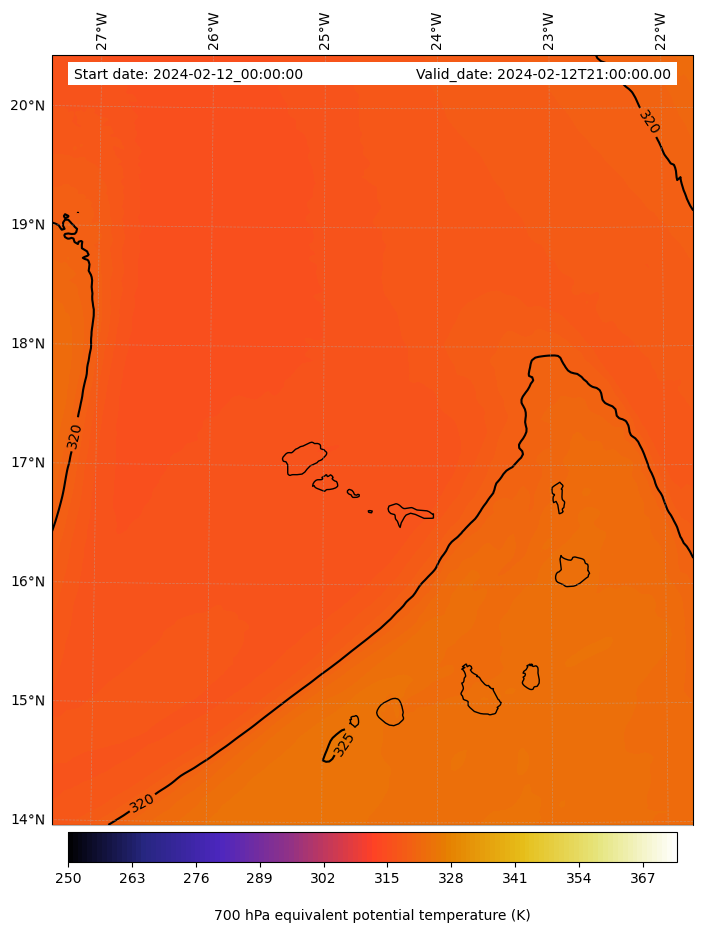 - Equivalent Potential Temperature (K)