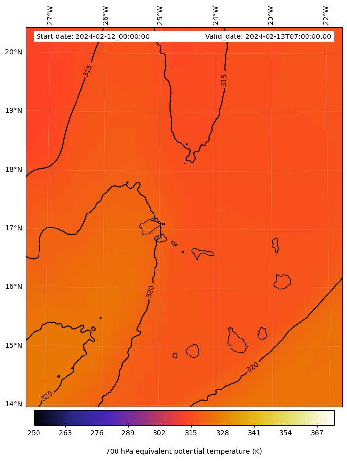 - Equivalent Potential Temperature (K)