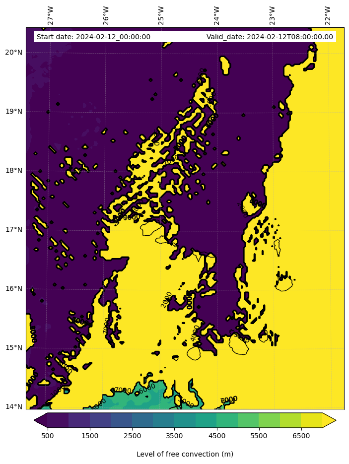 - Level of free convection (m)