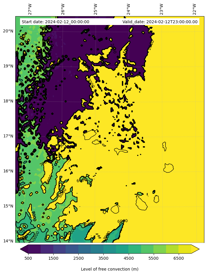 - Level of free convection (m)