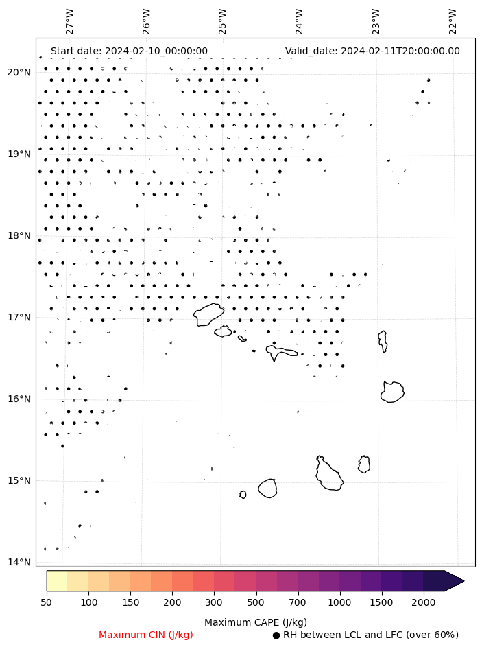 • Maximum CAPE (J/Kg)