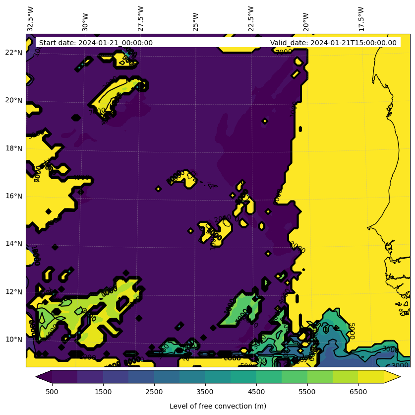 • Level of free convection (m)