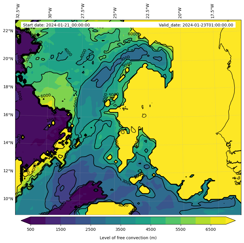 • Level of free convection (m)