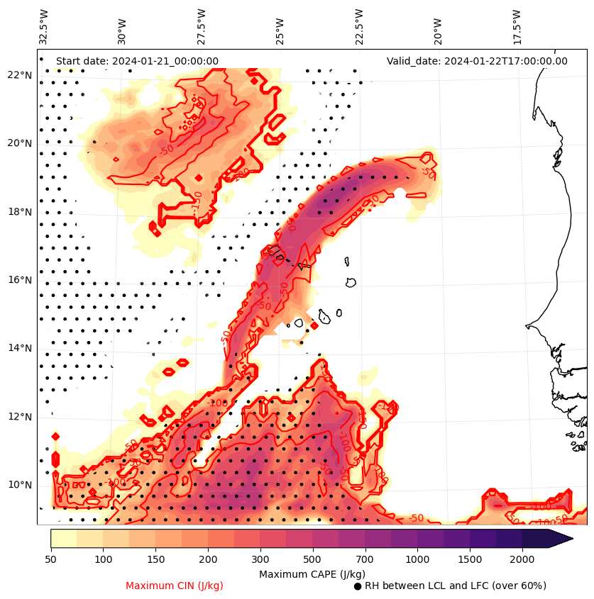 - Maximum CAPE (J/Kg)