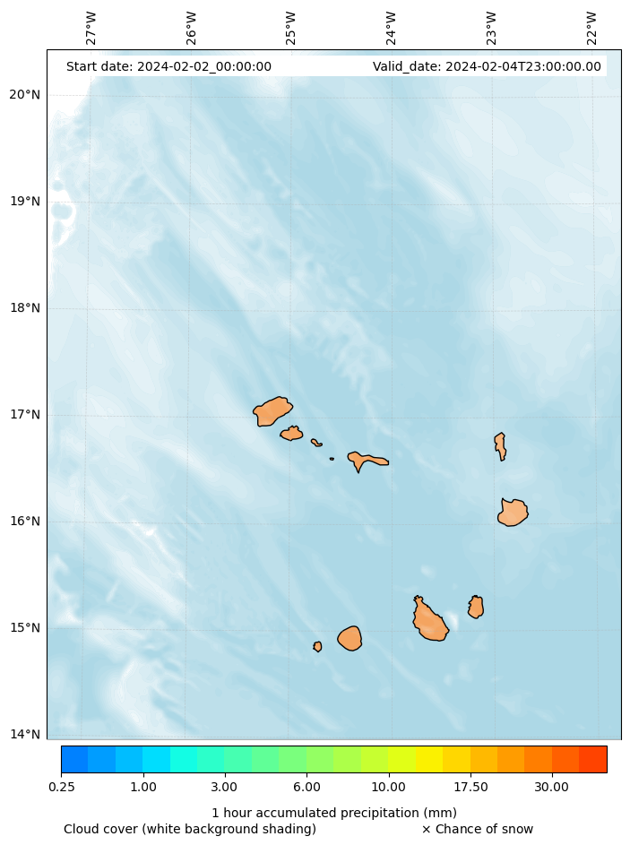 - Snow mixing ratio (g kg¯¹)