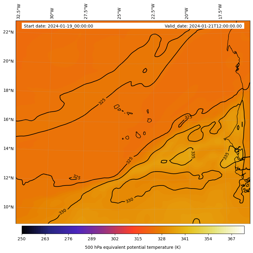 - Equivalent Potential Temperature (K)
