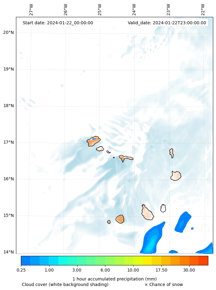 - Snow mixing ratio (g kg¯¹)