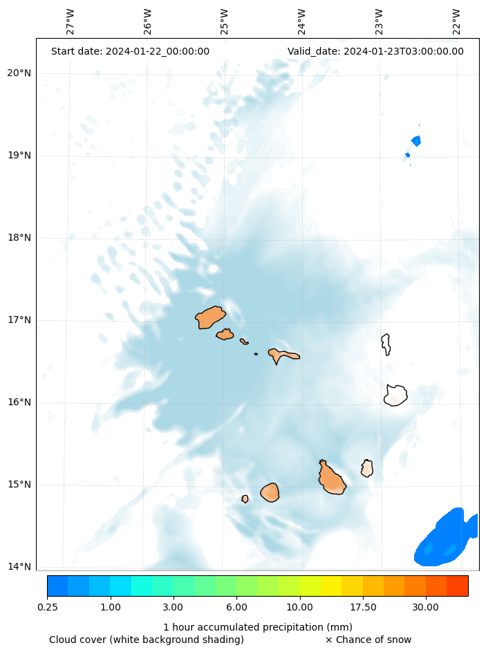 - Snow mixing ratio (g kg¯¹)