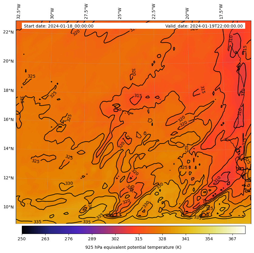 - Equivalent Potential Temperature (K)