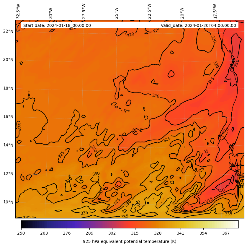 - Equivalent Potential Temperature (K)