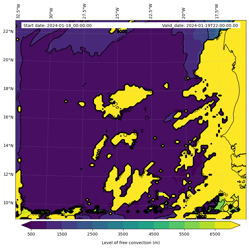 - Level of free convection (m)
