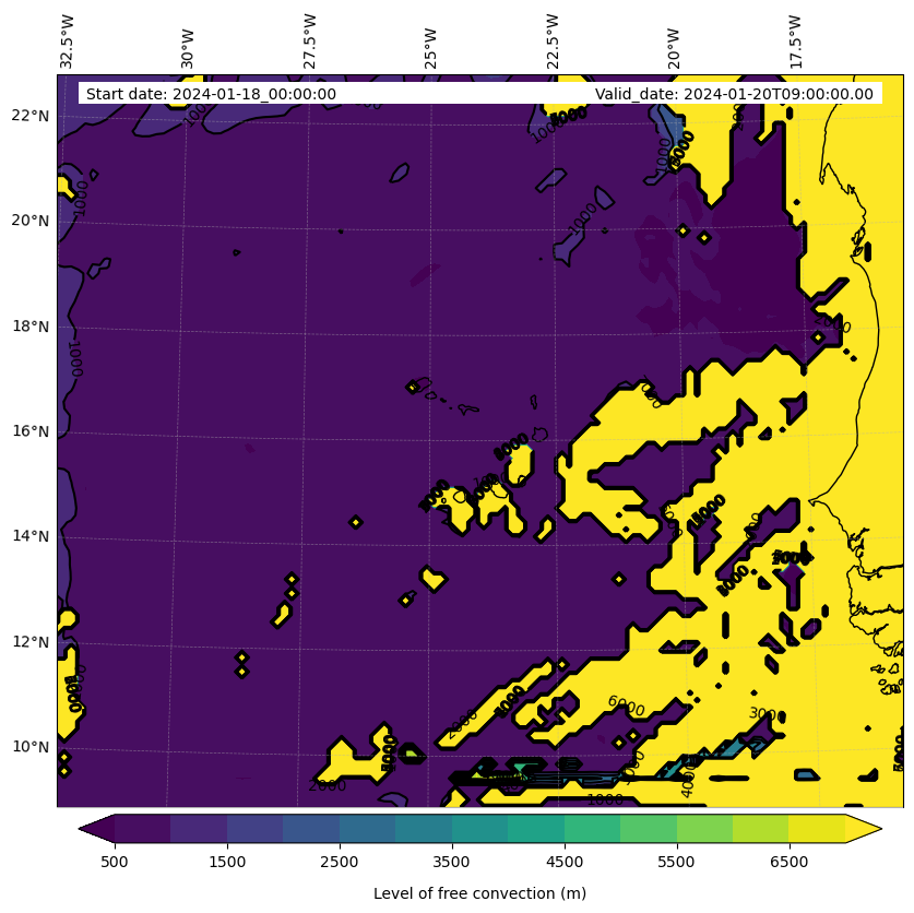 - Level of free convection (m)