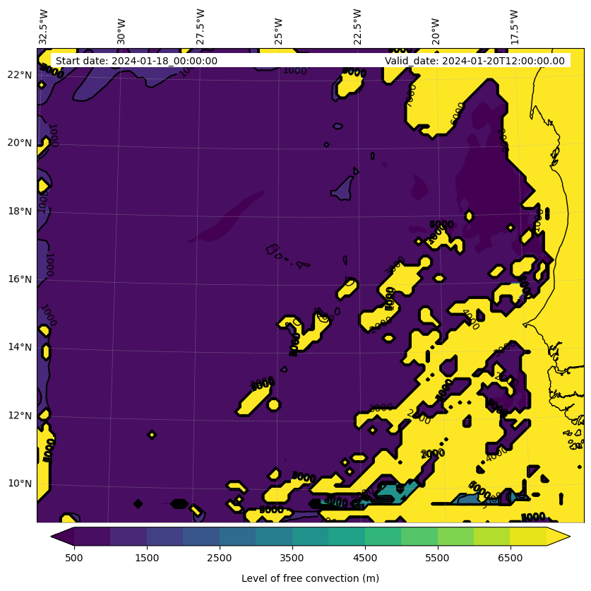 - Level of free convection (m)