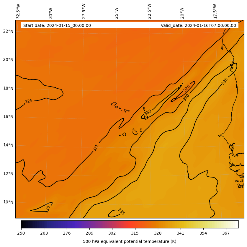 - Equivalent Potential Temperature (K)