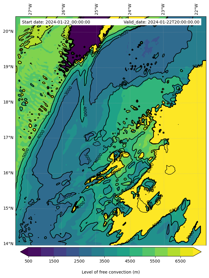 - Level of free convection (m)
