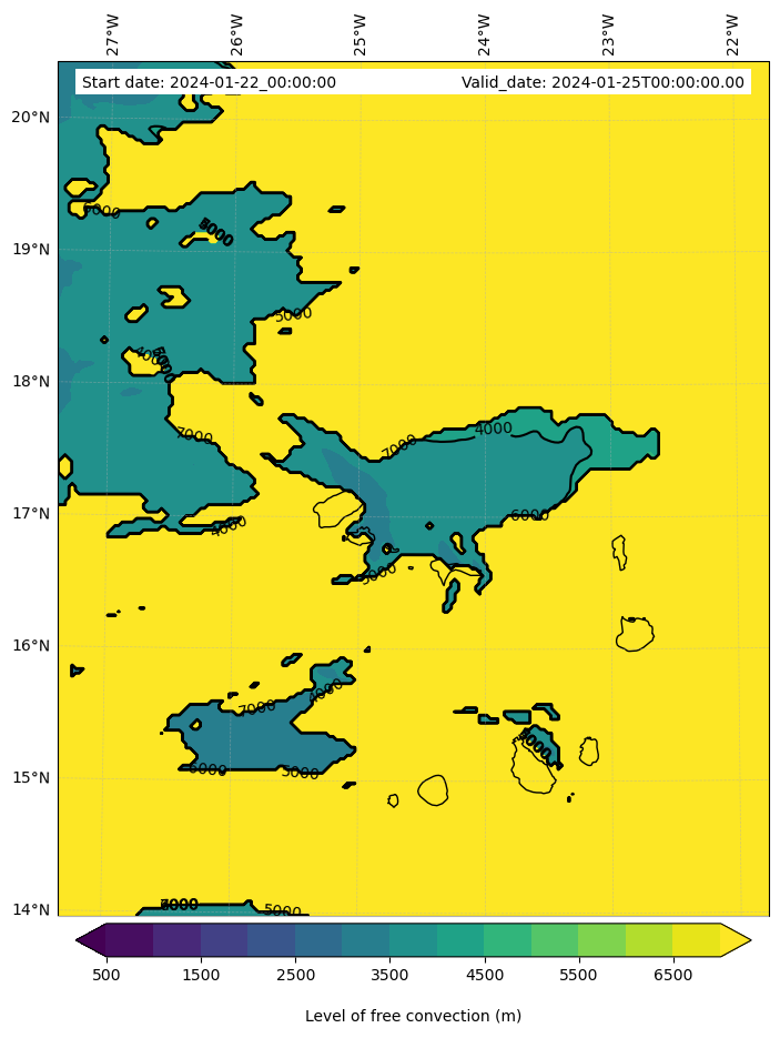 • Level of free convection (m)