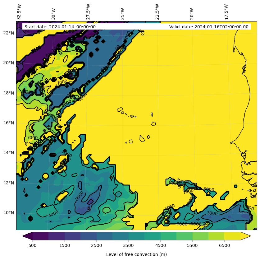 - Level of free convection (m)