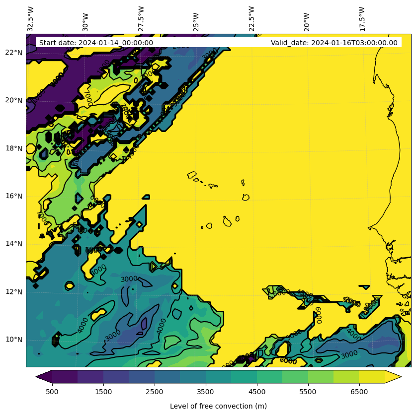 - Level of free convection (m)