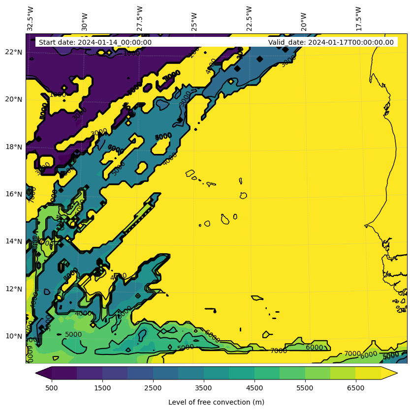 - Level of free convection (m)