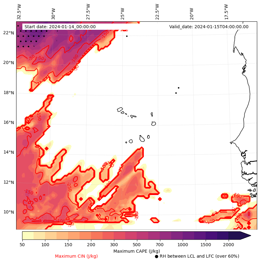 - Maximum CAPE (J/Kg)