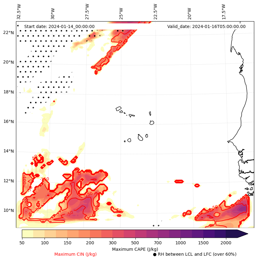 - Maximum CAPE (J/Kg)