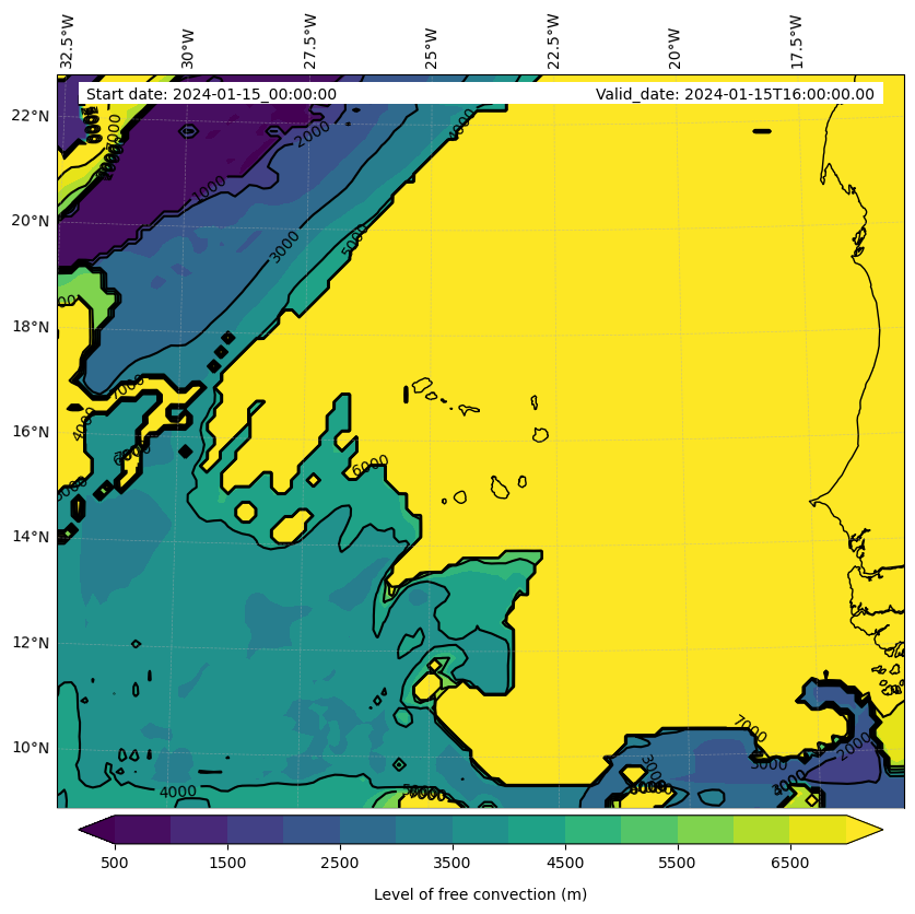 • Level of free convection (m)