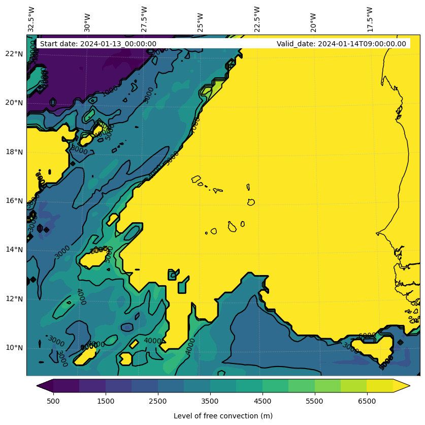- Level of free convection (m)
