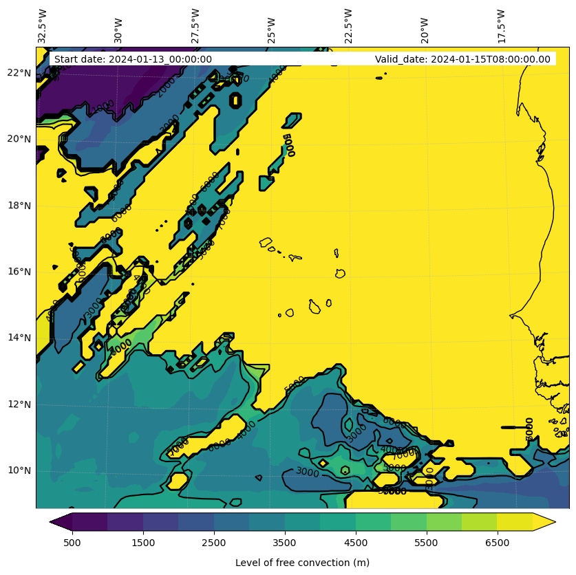 - Level of free convection (m)