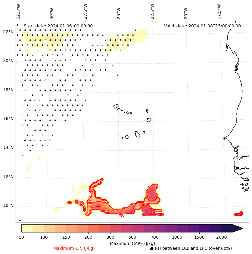 • Maximum CAPE (J/Kg)